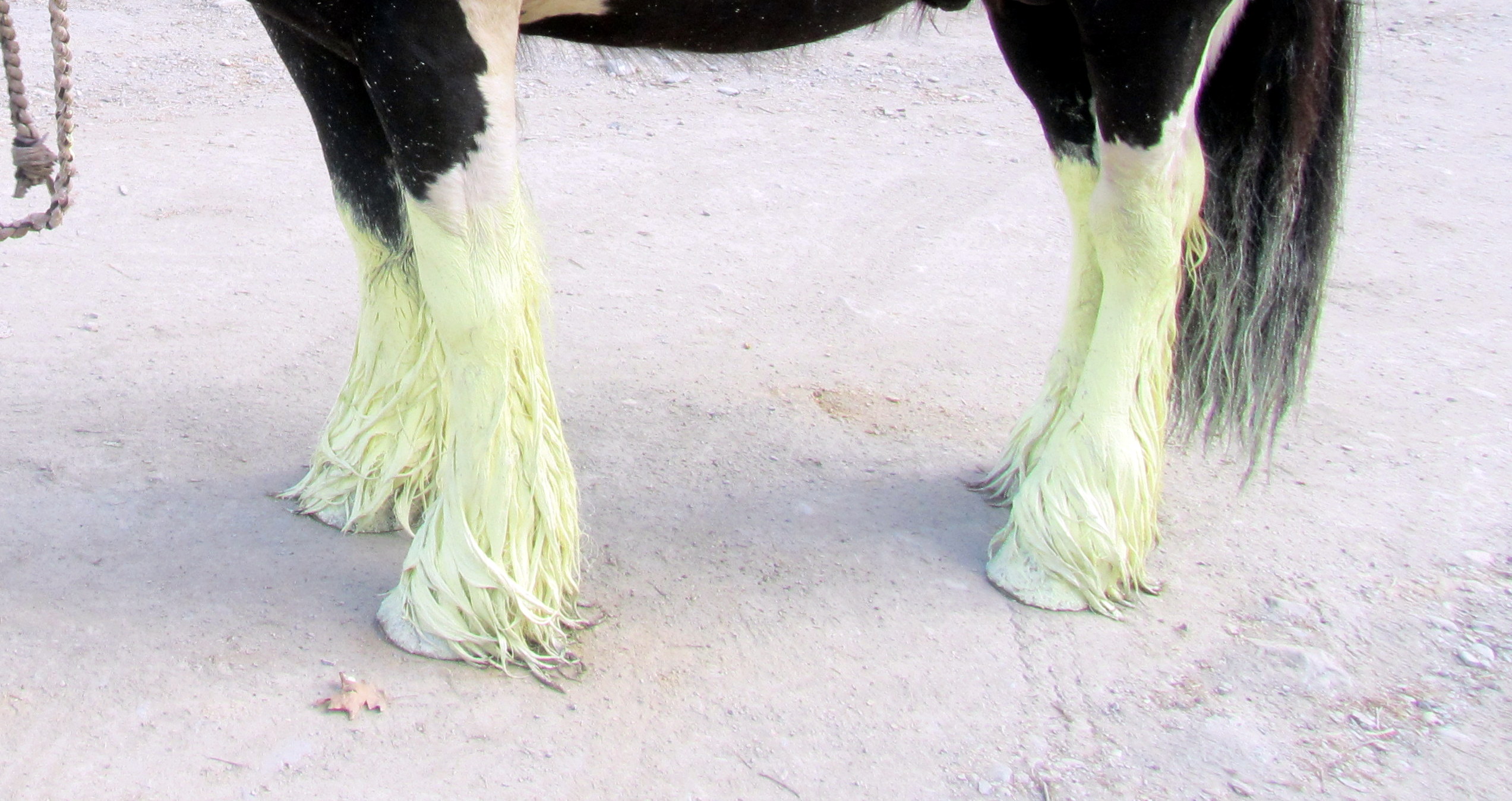consistency-- it is tough to mix and I use an electric hand mixer. This one gallon mixture should be enough to treat a heavily feathered horse.